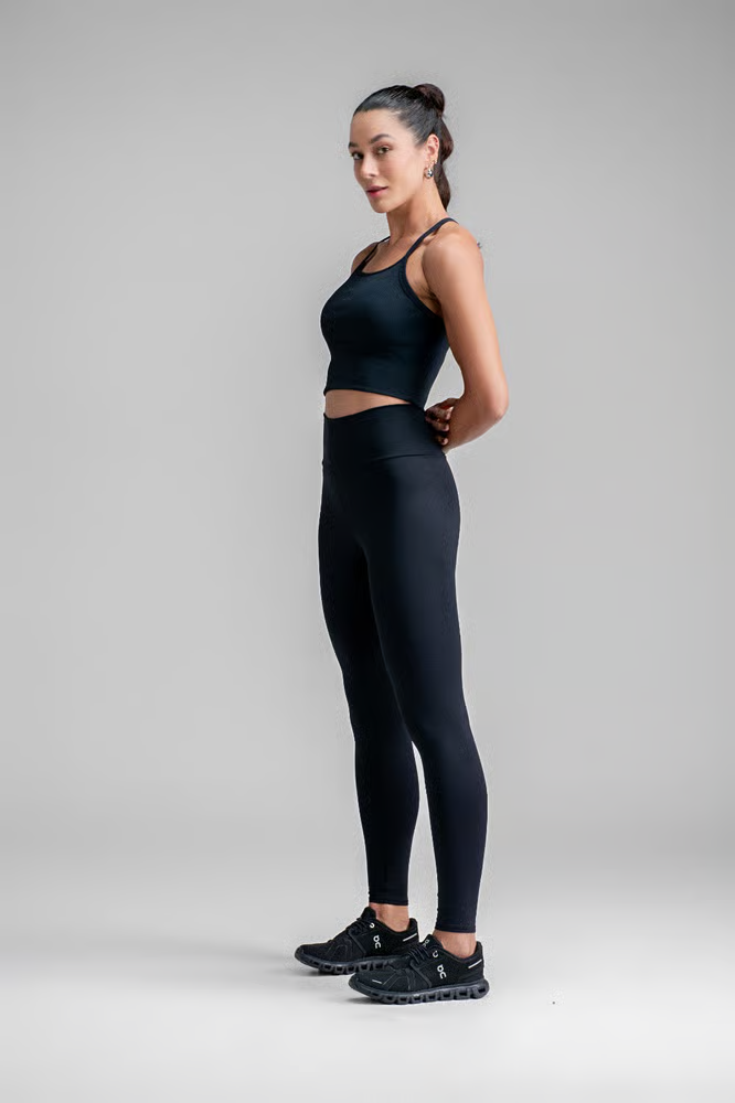 Se existe uma peça icônica no mundo fitness, é a Legging. Mas atenção: nem toda legging é igual. Para a academia, você precisa de estabilidade dimensional (aquela que não fica transparente quando você agacha) e tecnologia que acompanhe o movimento sem enrolar na cintura.